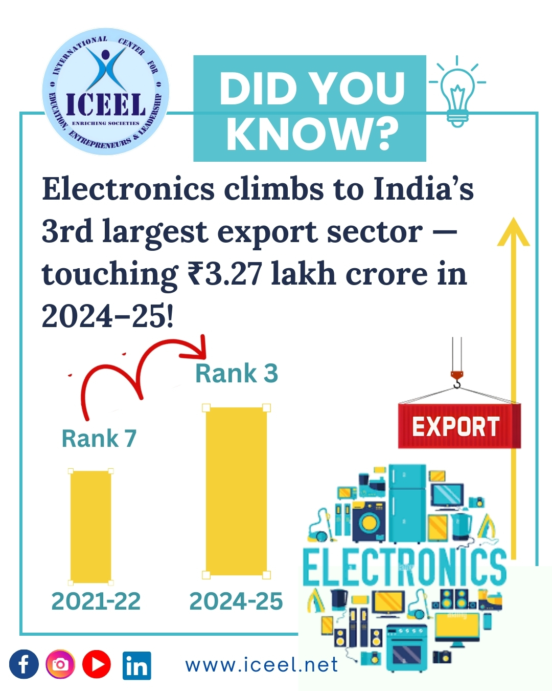 India’s electronics sector has witnessed a remarkable transformation — rising from the 7th largest export category in 2021–22 to the 3rd largest and fastest-growing sector in 2024–25. ๐โก