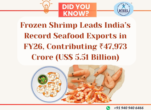 India’s seafood exports reached an all-time high of βΉ72,325 crore in FY26, with frozen shrimp contributing over two-thirds of the total value. ππ